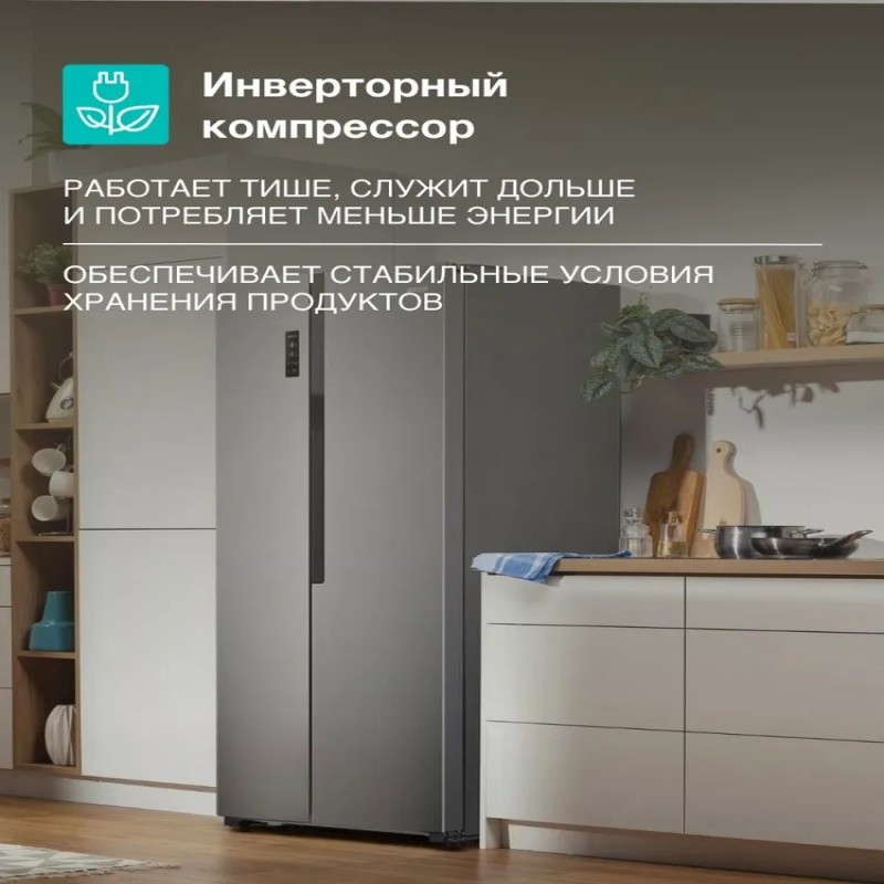 Надежный, тихий и долговечный. Инверторный компрессор работает тише, имеет долгий срок службы и потребляет гораздо меньше энергии по сравнению с обычным компрессором. Всякий раз, когда температура в холодильнике повышается при открывании дверцы, инверторный компрессор обеспечивает быстрое и эффективное охлаждение, чтобы предотвратить порчу продуктов.