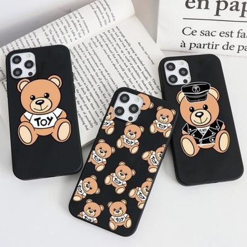 Мультфильм Симпатичный Медведь Медведь Пара Черный Чехол для телефона для iPhone 13 12 11 Pro Max Xi