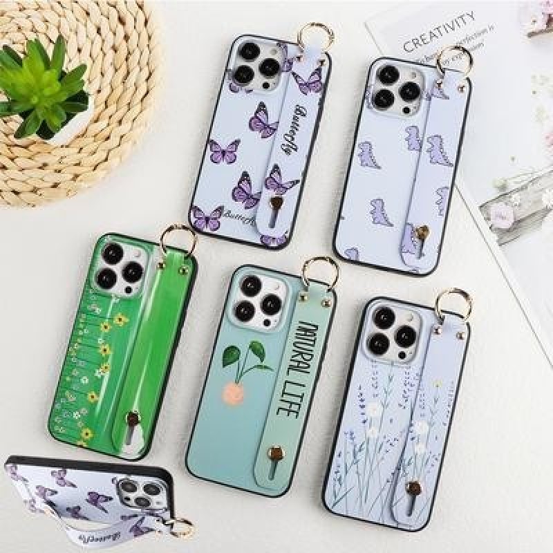 Бабочка Цветок Динозавр Наручный ремешок Держатель для телефона Чехол для iPhone SE 2022 13 12 11 Pr